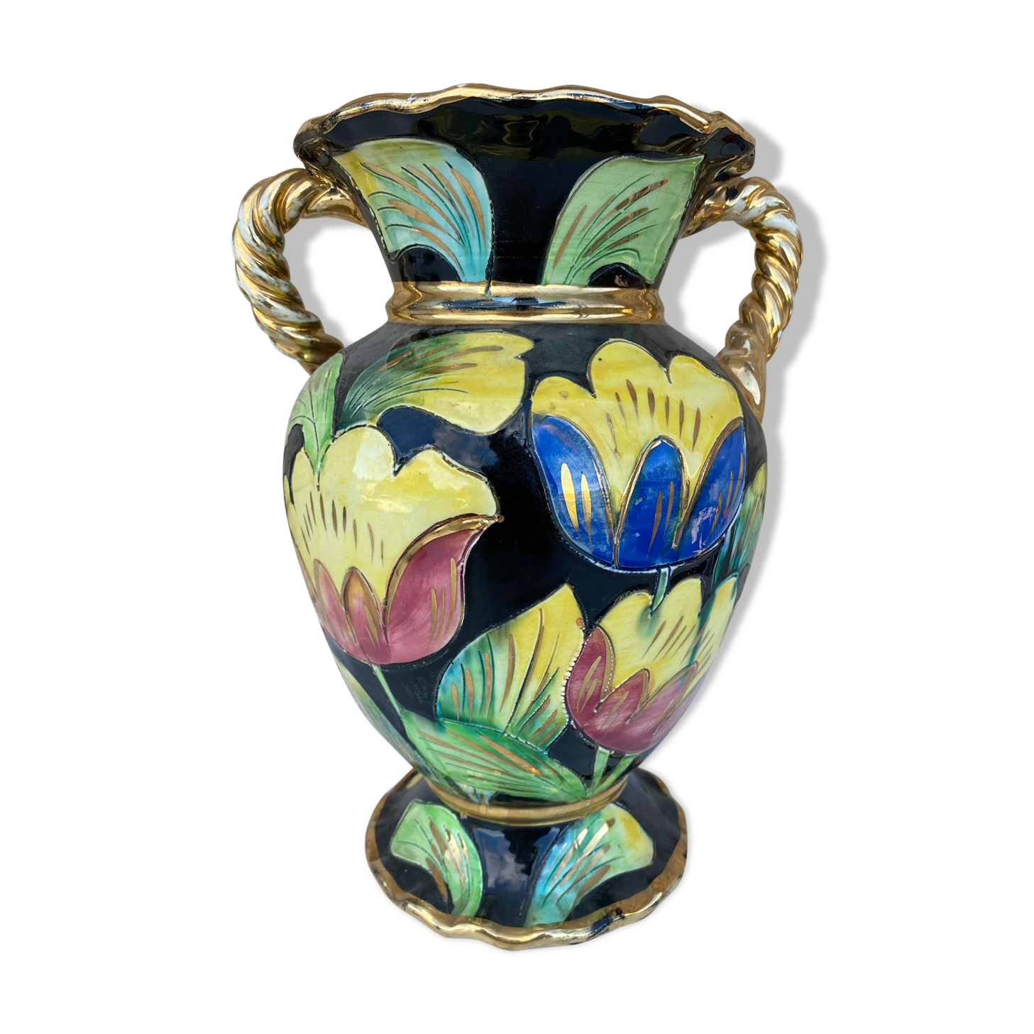 vase vallauris fleurs prix. vase jaune noir et dore vallauris ancien vase avec anses vase vintage en ceramique ancien vase francais vase jaune vieux vases decoration vintage